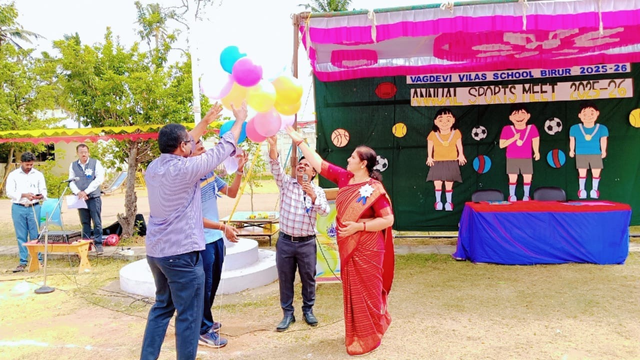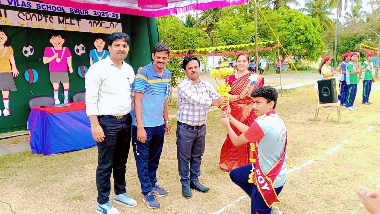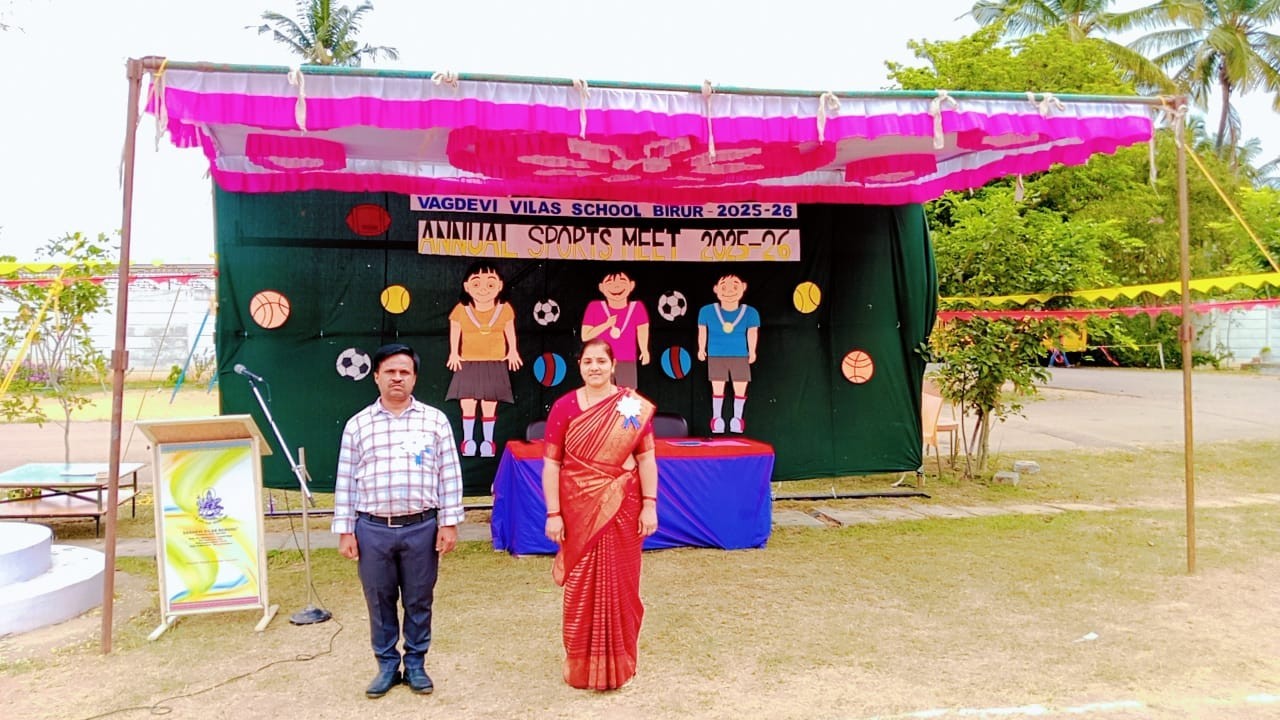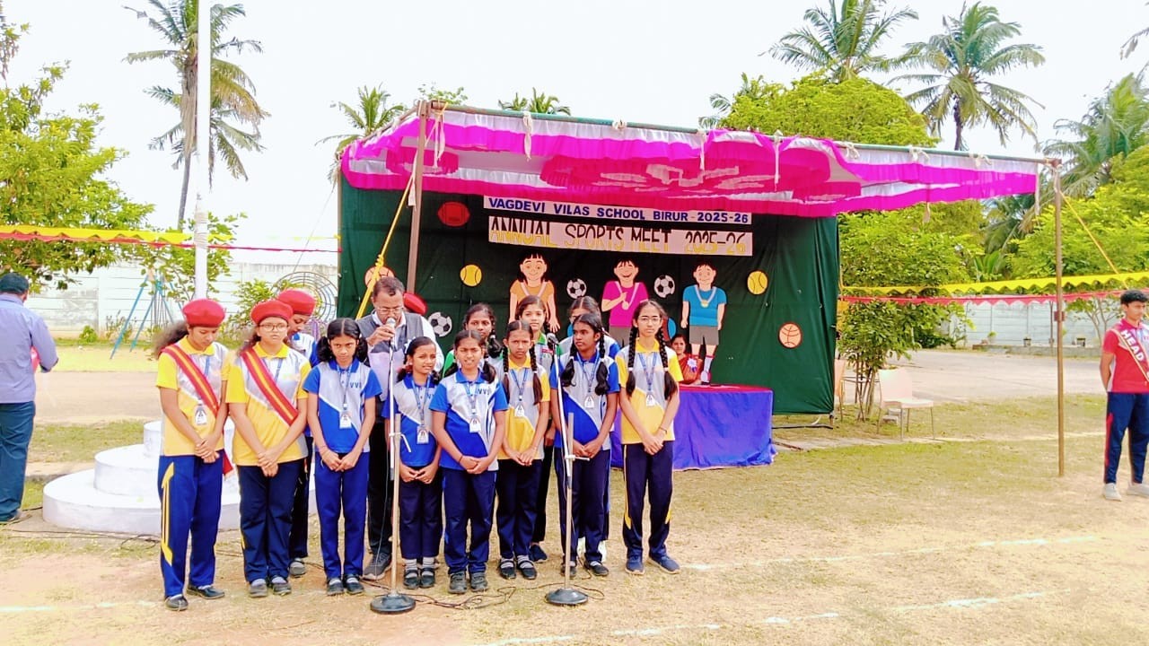 The Vagdevi Vilas School, Birur organized its grand Intra-School Sports Meet 2025–26 on the 4th, 5th, and 6th of December 2025 in the school campus. Students from all four houses—Agni, Akash, Vayu, and Bhoomi—participated with great enthusiasm, displaying excellent sportsmanship and teamwork throughout the three-day event.